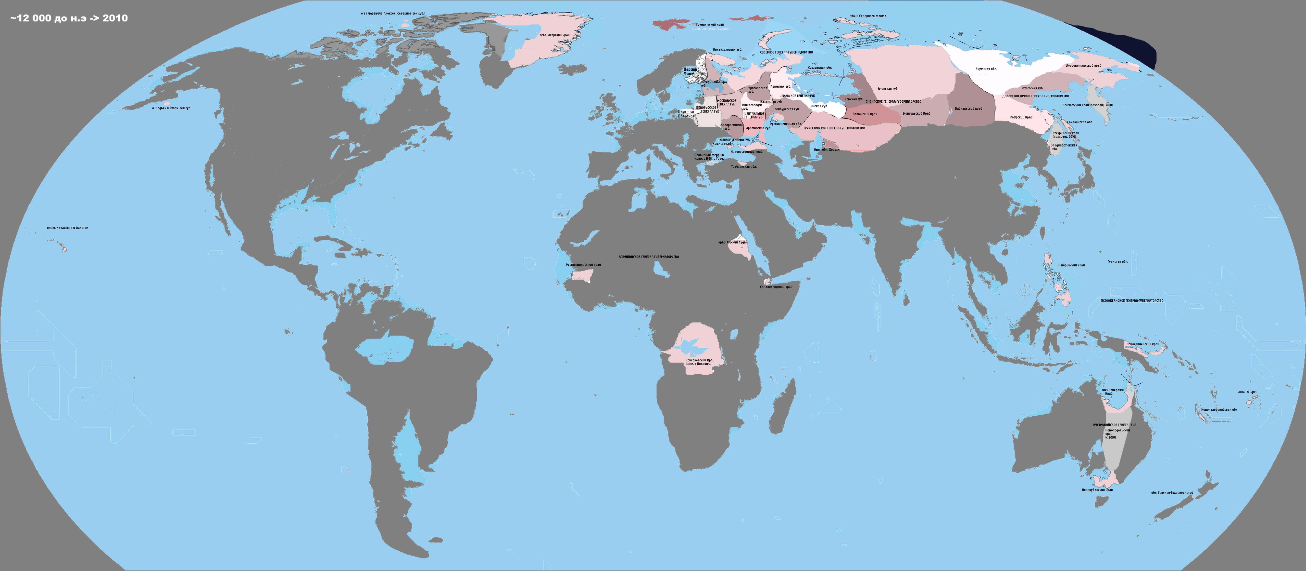 - десять внутренних генерал-губернаторств (главных, генерал-губернаторств метрополии), включающих в себя двадцать три губернии, десять краёв (включая возвращённые в 2010 Камчатский и Уссурийский) и восемь областей центрального подчинения