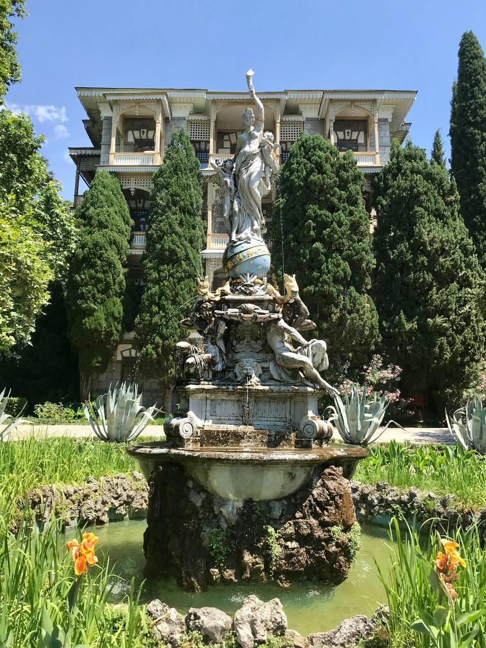 Ну и никак нельзя не упомянуть Богиню Ночи, которую возвели русские мастера по заморским эскизам на денежки железнодорожного короля Петра Губонина, который владел курортом продолжительное время и по отзывам работников санатория был хорошим человеком. В отличие от фашистких оккупантов, которые в годы второй мировой войны разрушили или вывезли остальные скульптуры парка.