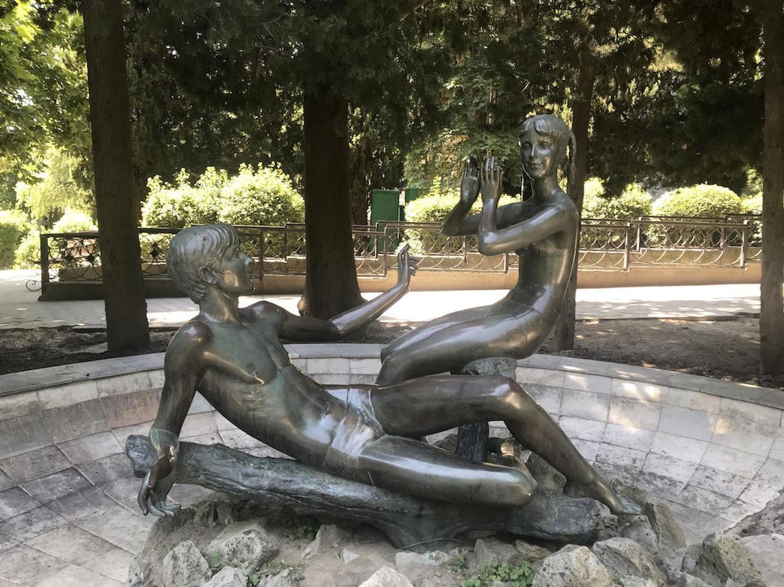 А немного в стороне от основных путей расположилась скульптура со скромным названием "Диалог".