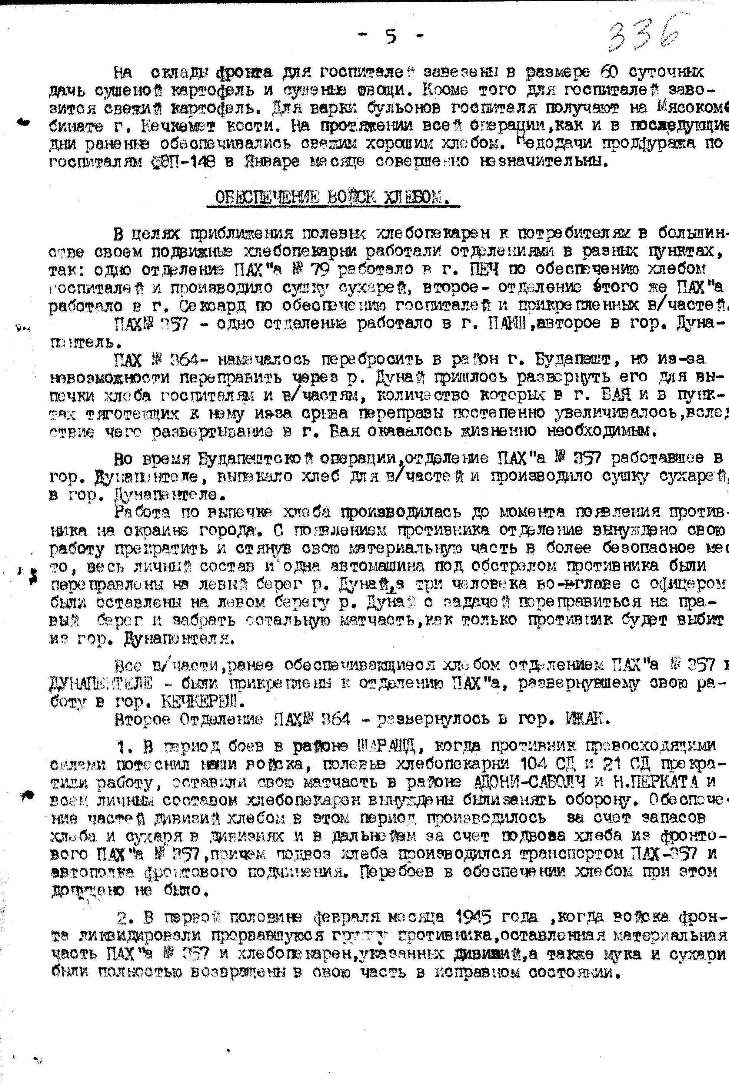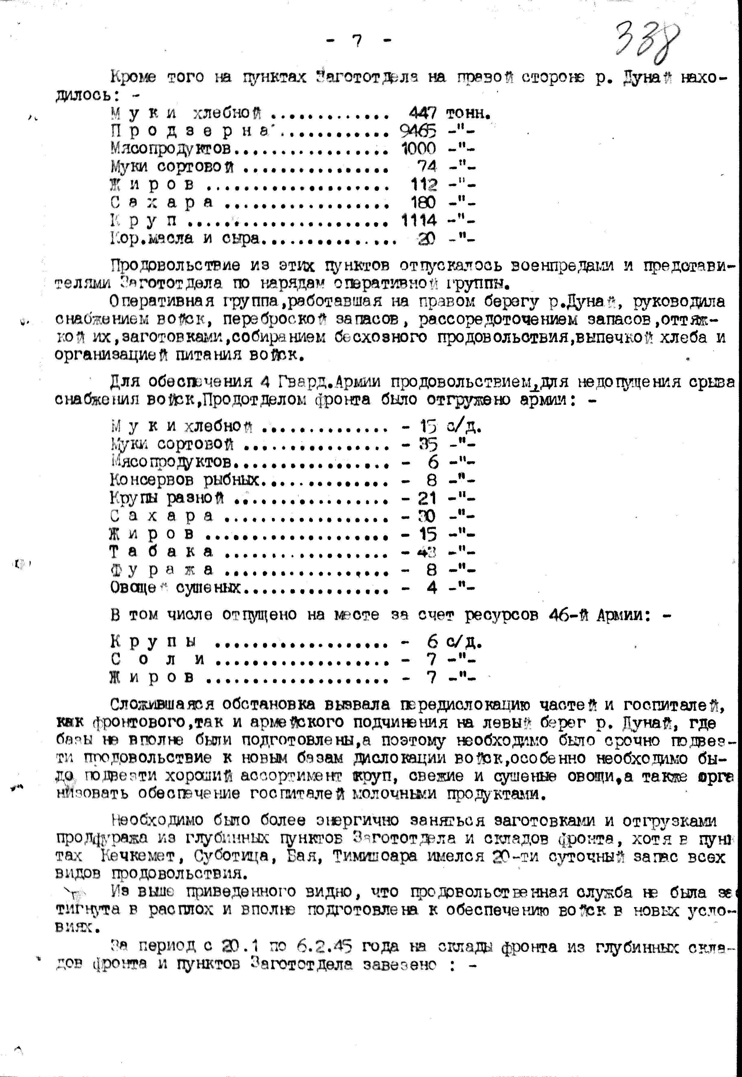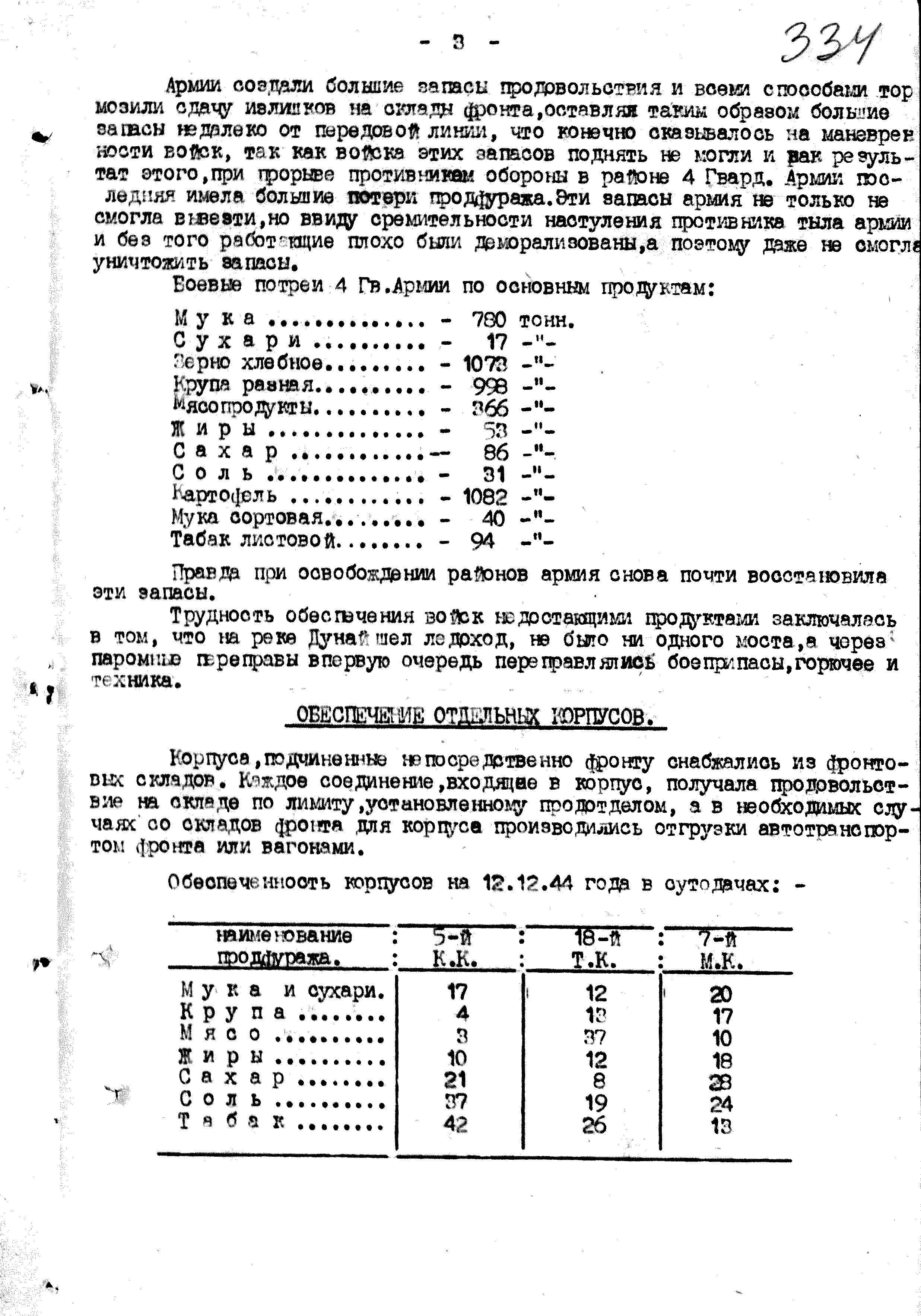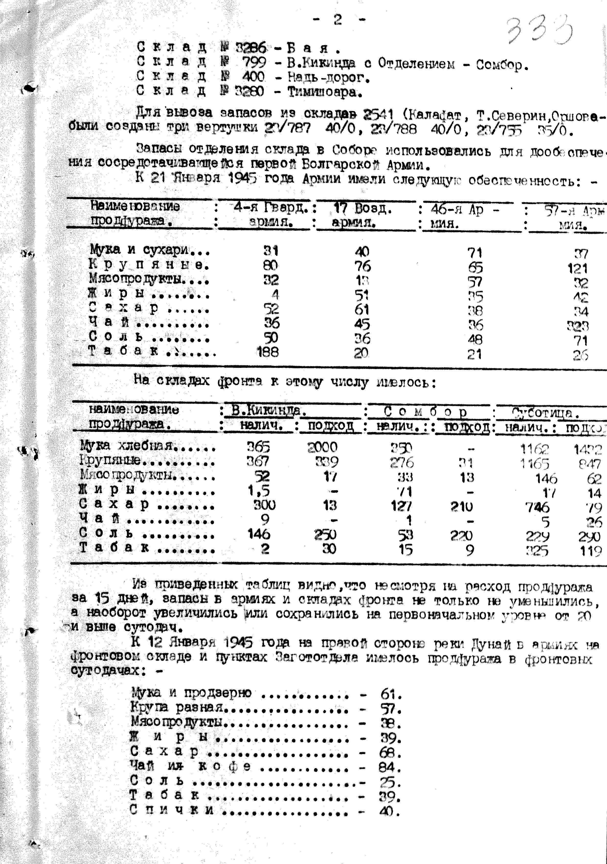 Потому и ценны два сохранившиеся в архивах доклада продовольственного отдела Интендантского управления 3-го Украинского фронта о работе службы продовольственного снабжения в Будапештской и Венской операции. Сегодняшний рассказ, точнее документ, посвящен Будапештской операции.