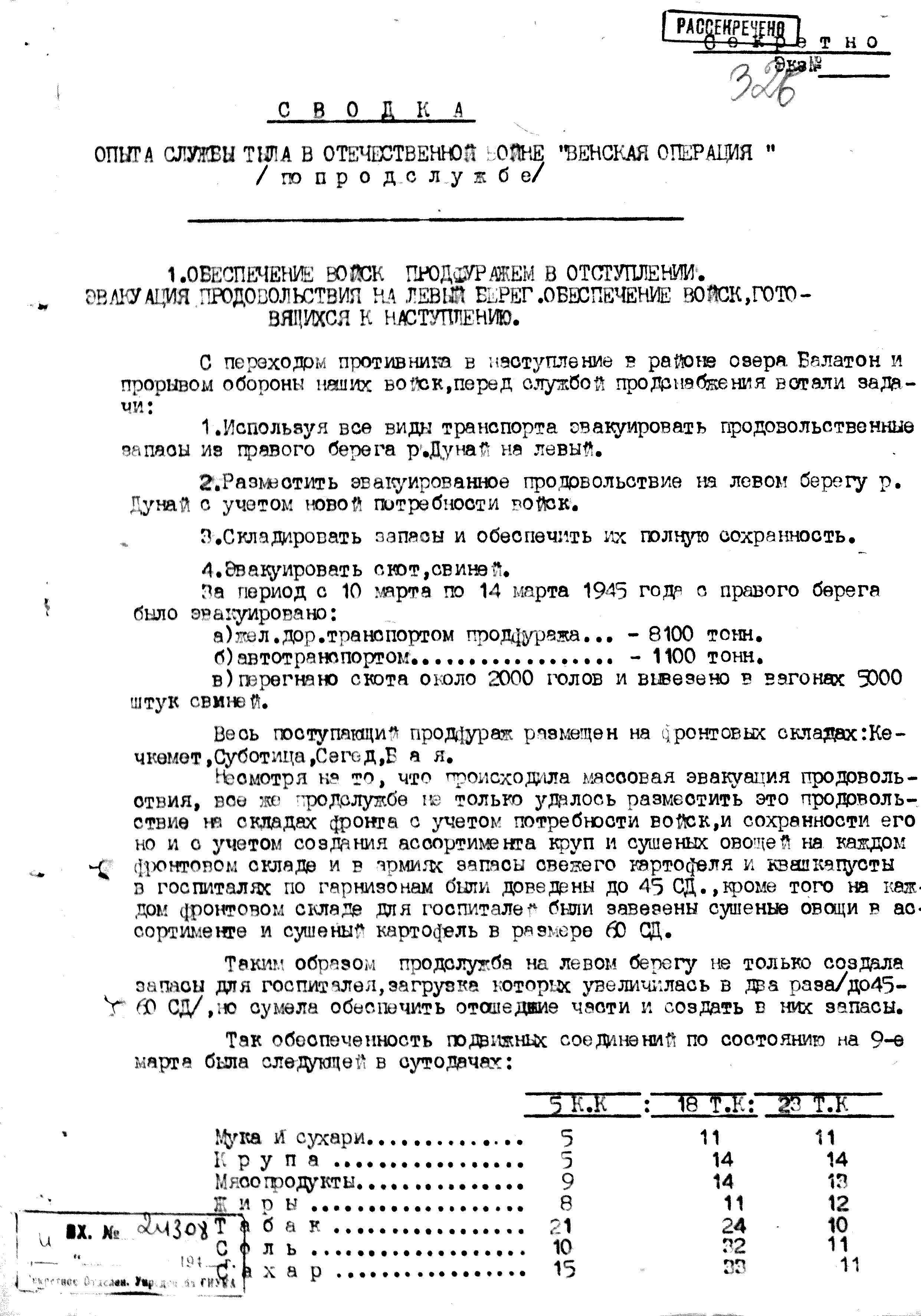 В продолжение публикации о продовольственном обеспечении в Будапештской операции, размещаю сводку опыта продовольственной службы при обеспечении "Венской операции". Документ также разработан отделом продовольственного снабжения 3-го Украинского фронта и подписан начальником продслужбы 3-го Украинского фронта - гв. полковником инт. службы Красавиным Николаем Ивановичем.