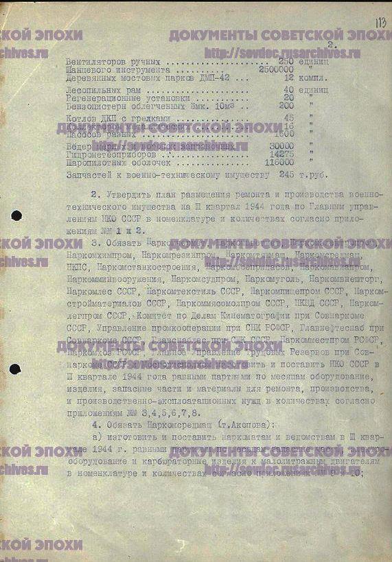 3. В целях большей ответственности установить временные штаты уполномоченных по заготовкам в областях с необходимым аппаратом, т. к. выполнение ответственной работы временными людьми (офицерами из резерва) снижает эффективность и качество заготовок.