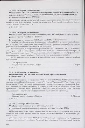 Постановление ГОКО от 24-го августа 1944 г. № 6455. «О создании на 1944-45 гг. запасов хлебофуража для обеспечения потребности военных округов, Забайкальского, Дальневосточного и Закавказского фронтов из заготовок зерна урожая 1944 г.»