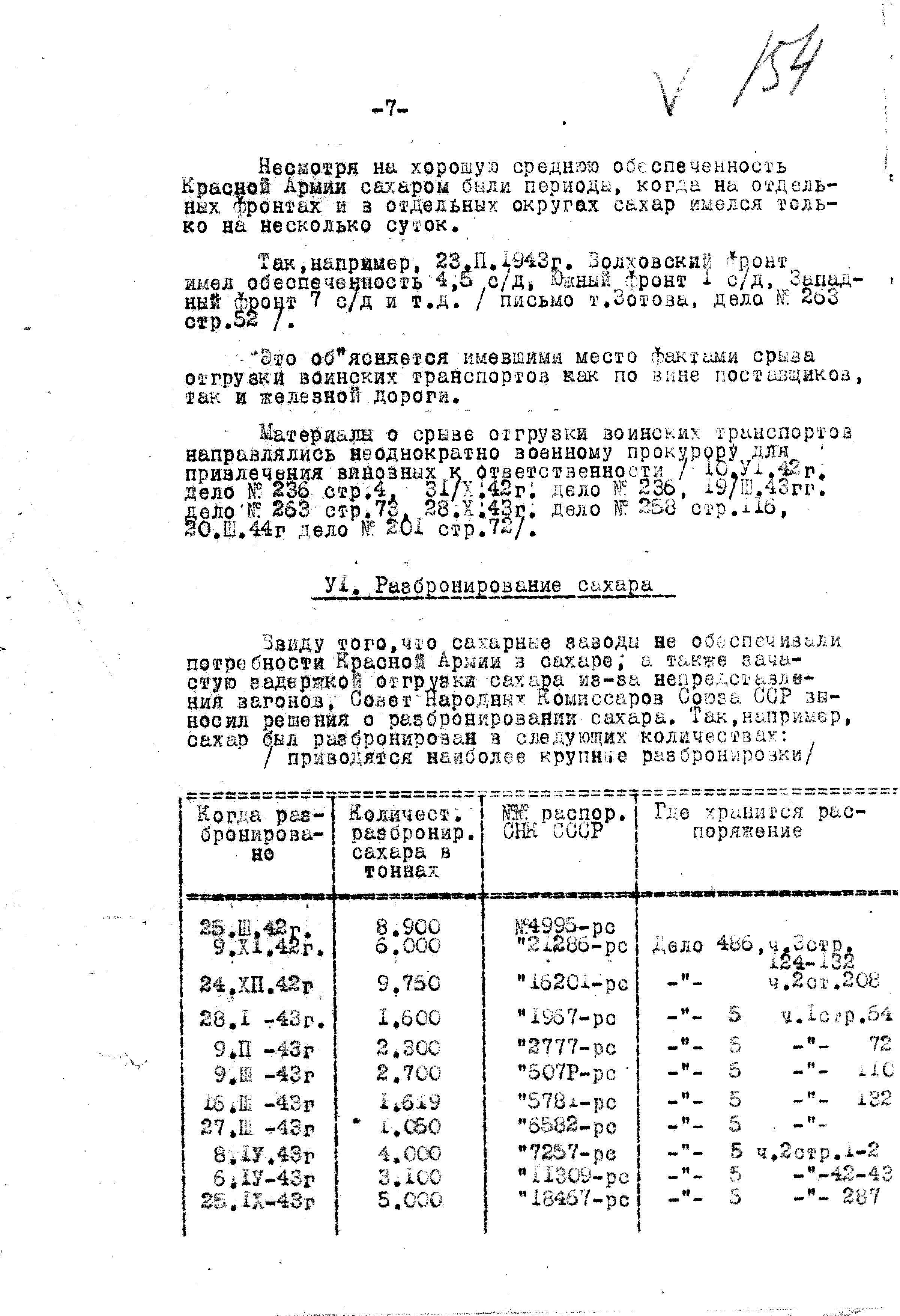 По распоряжению СНК СССР от 9. Х. сахар с прикрепленных к фронту сахзаводов поступил в пределах выделенных фондов на довольствие этих фронтов, что позволило сократить перевозки сахара и поднять обеспеченность фронтов.