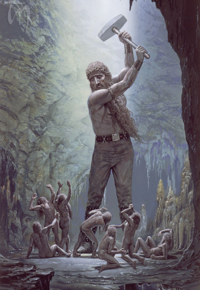 Тот предложил гномов Илуватару, и в порыве раскаяния попытался уничтожить их молотом, но Эру дал им свою волю, и гномы отпрянули, взмолившись о милосердии.