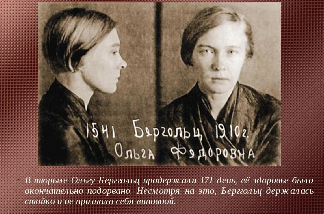 Если бы не Мария Федоровна, Ольгу забили бы тогда в тюрьме до смерти. Но в молодости Мария Берггольц была настоящей красавицей! Вот она и пошла на поклон к следователю Гаглидзе, я даже фамилию запомнила, — говорит Татьяна. — Уж я не знаю, о чем они разговаривали, и чем она откупилась, но Ольгу выпустили.