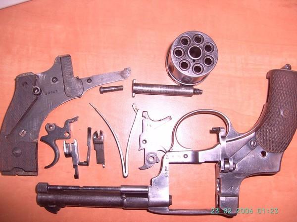 3)Барабан(на некоторых наганах переделан из боевого,путем вставки втулок в барабан,на других - цельная деталь.),