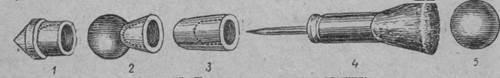 Пули пневматического оружия: 1 2 и 3 - расширительные («Диабло»); 4-с оперением (кисточка) и 5- шариковая (дробинка) Пули «Диабло» имеют длину— 4,7 мм; диаметр головной части - 4,65-4,7 мм.