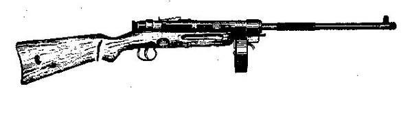 Емкость магазина 40 патронов. Применялся во время войны диверсионными группами РККА и НКВД.