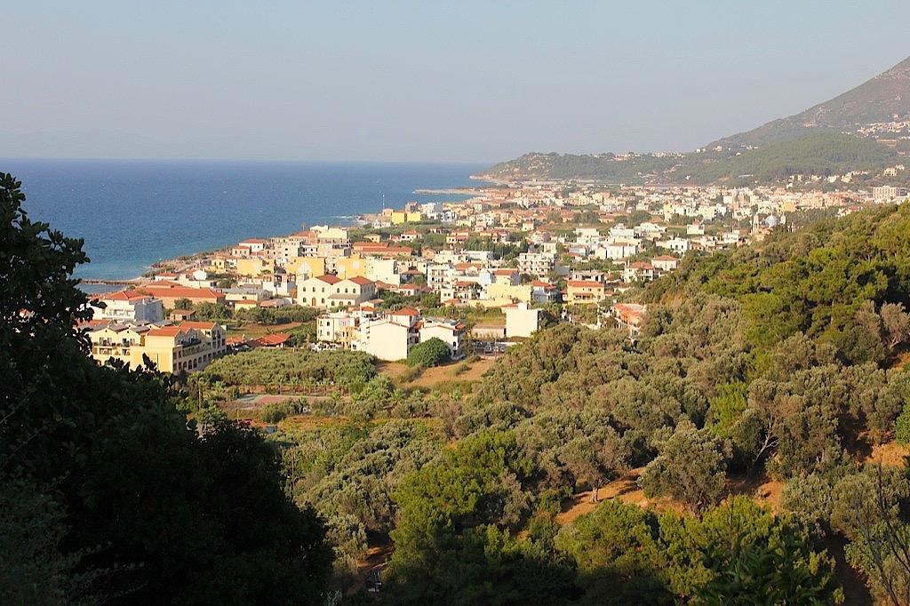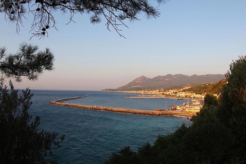 Сам остров небольшой: 43 километра в длину, около 13 км в ширину. Имеет всего пять населенных пунктов. Мы остановились на северном побережье острова рядом со вторым по значению морским портом Самоса в районе Карлваси. Население города - всего 6700 человек.