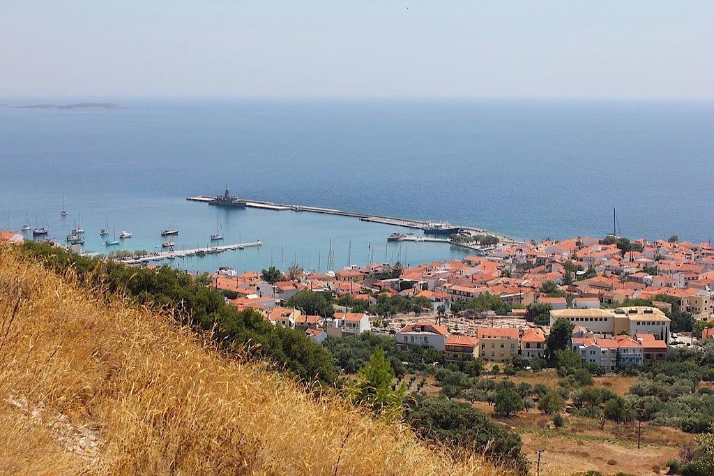 Вот такой вид открывается на порт с горной церквушки - центра общины Дитики-Самос: