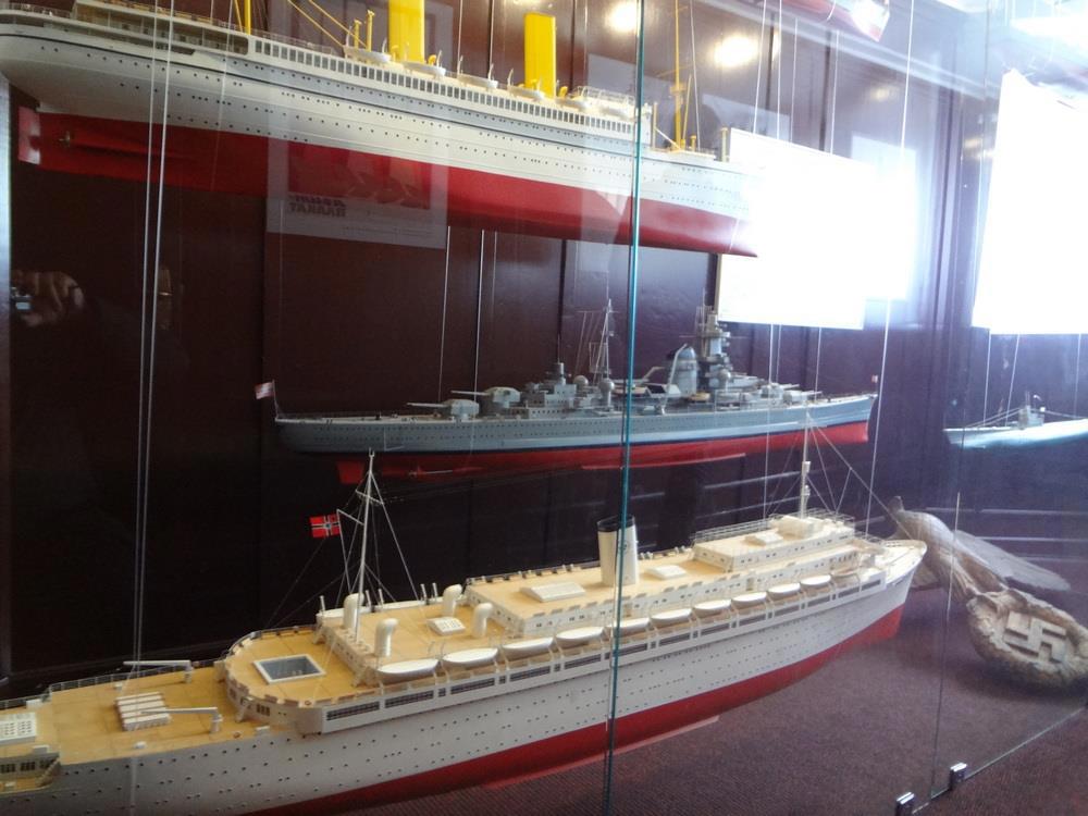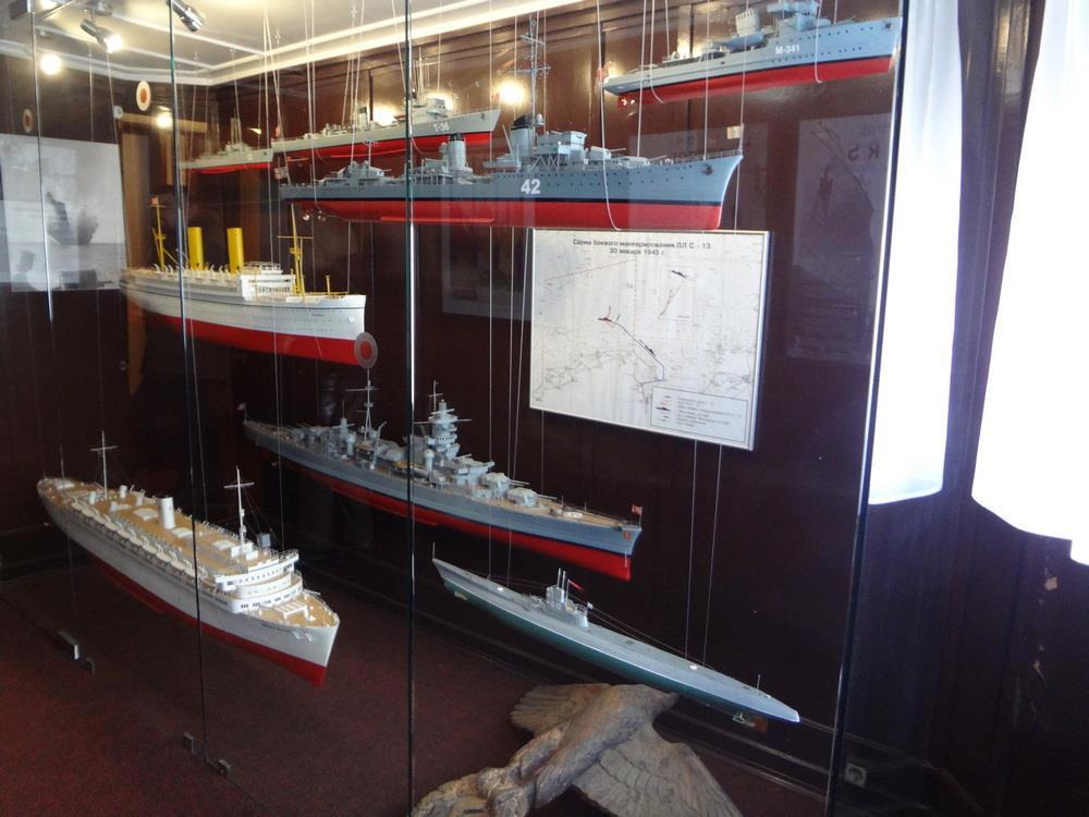 Витрина целиком, сверху корабли конвоя "Густлоффа" и "Штойбена". Перспектива делает мелкие суда больше визуально, на деле масштаб выдержан. Так же есть схема торпедирования и маневров.