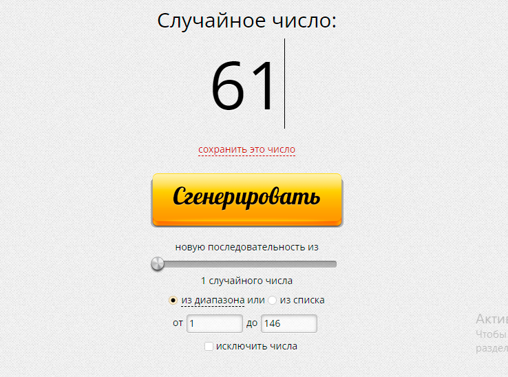 Генератор случайных чисел: