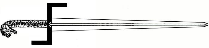 У данного меча плавно сужающееся к острию заточенное с обеих сторон длинное лезвие, что состоит из двух половин, между которыми проходит узкая щель; загнутые под прямым углом (один вверх, другой вниз) концы крестовины и изображающая тело змеи фигуристая рукоятка с навершием в виде её оскаленной головы.