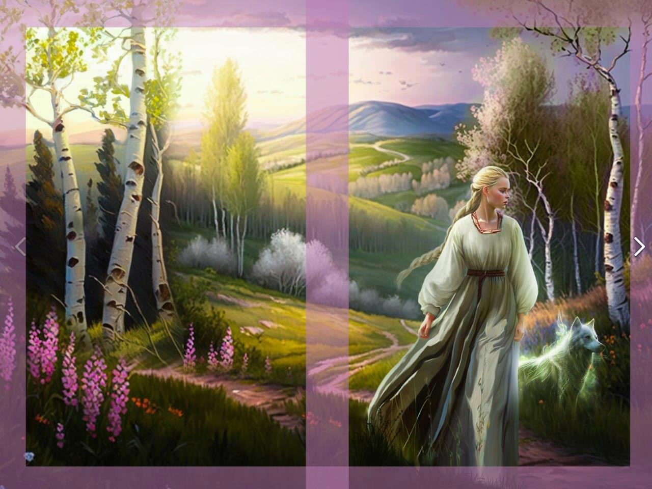 Одежду нужно другую, юбок у них не было, было что-то типа рубах,может быть приталенных как на картине Рериха.(пересылаю)Знакомый археолог написал, что не могла быть простоволосой, может быть полузаплетенная коса?