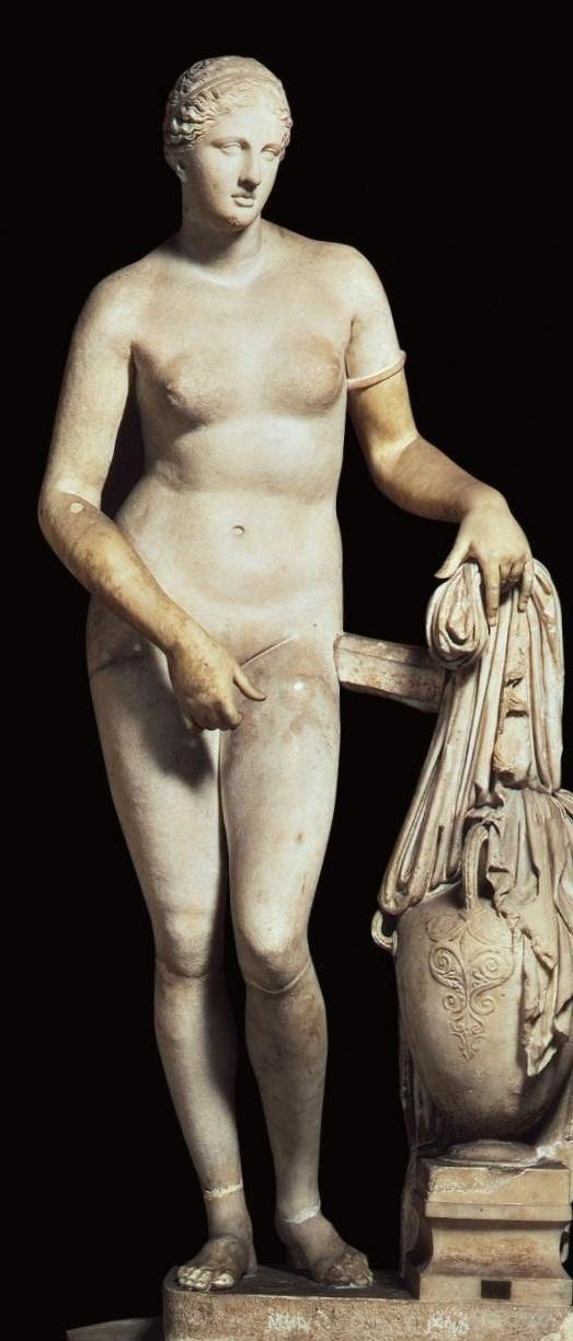 Первые в истории такие скульптуры создавали в Древней Греции, однако долгое время эллины высекали обнаженных мужчин, но одетых женщин. Нарушить традицию решился скульптор Пракситель. Примерно в 330-350 годах до н.э. ему заказали статую Афродиты. Скульптор сделал два варианта, в одетом виде и голую, и предложил выбрать любую по одной и той же цене. Заказчики почесали в затылках и решили не рисковать. Богиня все-таки. А вот их соседи, жители острова Книдос, купили обнаженную Афродиту, и не прогадали! О статуе пошла молва, ее начали копировать — всего было обнаружено 55 реплик, не считая более поздних, эпохи Возрождения.