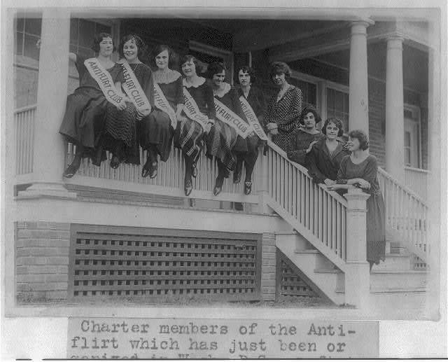 В марте 1923 года президент Клуба противников флирта мисс Элис Рейли объявила наступление «Недели без флирта». Ее клуб объединял молодых женщин, которые устали от мужских приставаний. Американские мужики, еще не знакомые с понятием «харрасмент», флиртовали тогда по-простому. Они сигналили, проезжая мимо в автомобиле или просто стояли на углу с приятелями, а при виде симпатичной барышни свистели, выражая свое восхищение, и предлагали прогуляться. Именно против такого «флирта» и выступали мисс Элис Рейли и ее единомышленницы.