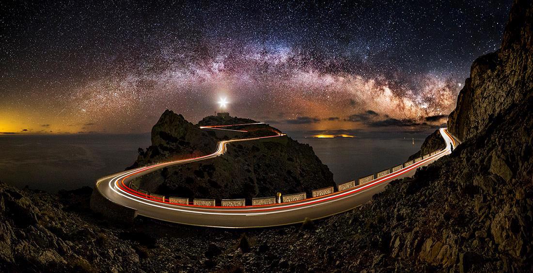 Арка Млечного пути над маяком Форментор, расположенным на Майорке.