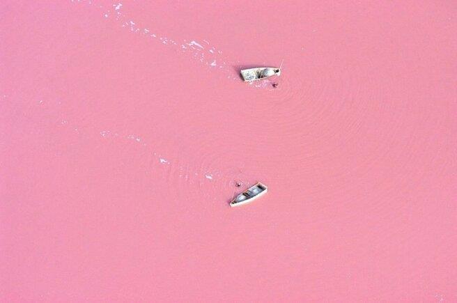 Озеро Ретба. Сенегал. Африка. Микроорганизмы и соли делают эту воду розовой.