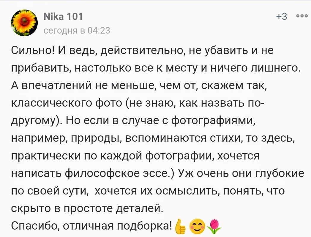 Правда есть ещё пейжазная разновидность минималисткой фотографии. Там я думаю люди используют модификацию снимков. Но в любом случае это искусство. И оно мне нравится.