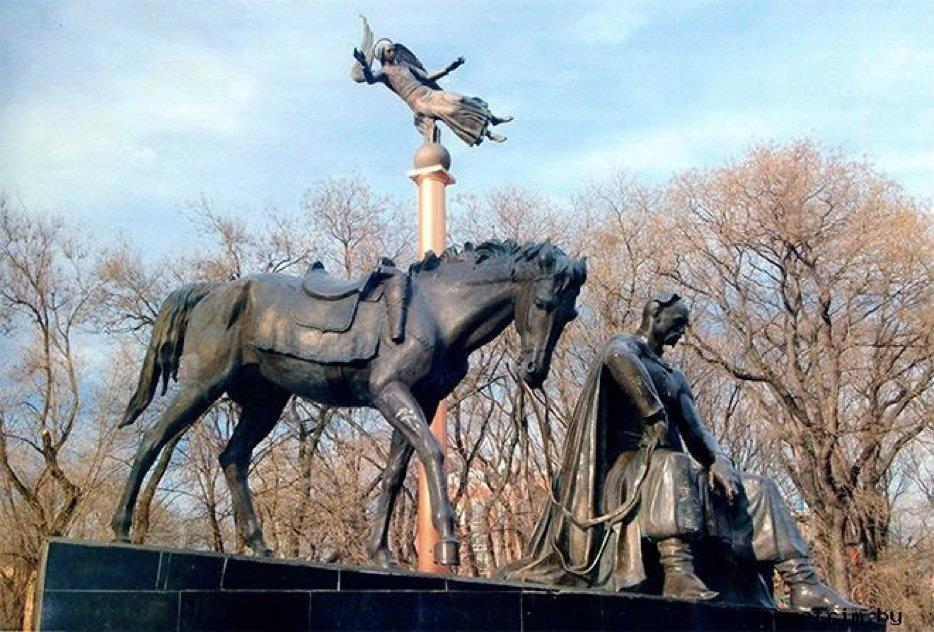 Памятник атаману Головатому, с которого пошло Кубанское казачье войско, состоит из собственно атамана и его коня. Лошадь животное крупное, да еще и расположено выше сидящего на приступочке атамана, посему со многих ракурсов видное в первую очередь. Итого - "Памятник лошади Головатого":