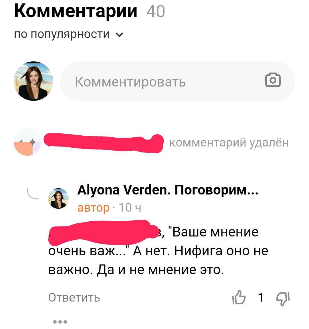 Второй коммент он тоже, видимо, удалил. А зря, я как раз такой ответ классный придумала...