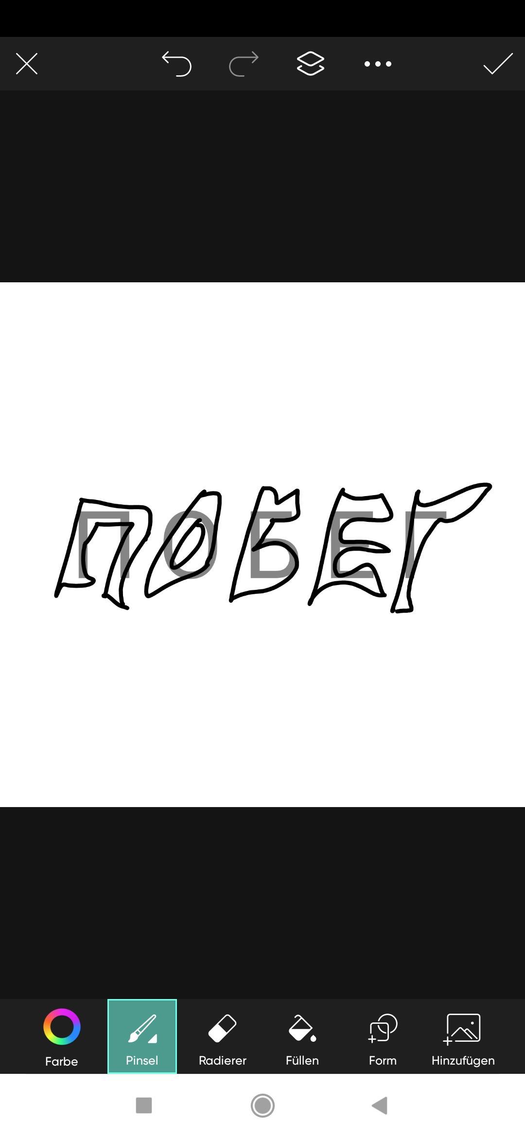 Слово оттуда я просто написал руками ещё в приложении PicsArt, без ориентира, на глаз.