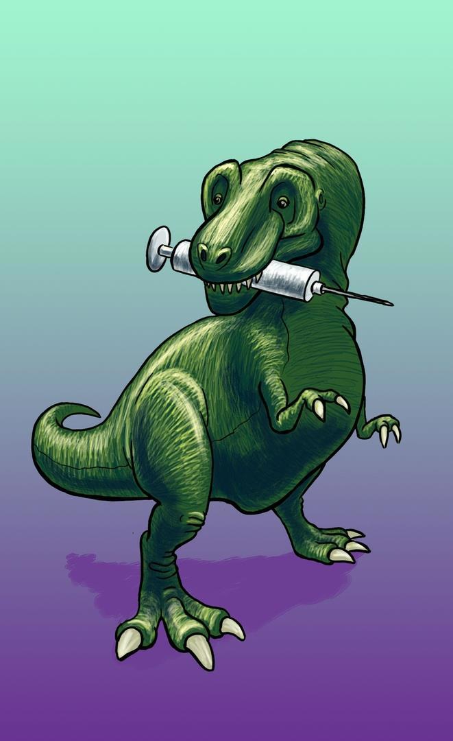 Дело в том, что Женя, главный герой, рисует комикс про тираннозавра Горацио, поэтому меня безмерно радует арт, есть в этом что-то, ломающее четвертую стену. А в шприце ничего криминального, лекарство для Жениных любимых чокнутых :)
