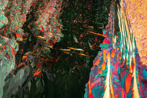 Цвета, присутствующие на отпечатках, не являются цифровым творением, а скорее естественным результатом применения методов поляризованного освещения к микрокристаллам, обладающим свойствами двулучепреломления. Цвета указывают на оптические свойства кристаллических структур. То есть кристаллы действительно выглядят так в оптическом прицеле. Фотографии с феррожидкостью и различными чернилами также окрашены естественным образом.