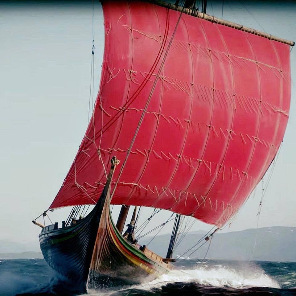 Корабль был наилучшим во всех отношениях. Никогда в Норвегии, да и во всей Скандинавии, не было корабля, который превосходил бы этот. Корабль был очень большой и красивый. На нем было тридцать скамей для гребцов и высокие борта и отличная оснастка. Впереди у него была драконья голова. Нос корабля и верхние доски бортов были украшены резьбой, а штевни еще и позолочены. Это был очень крепкий и мощный корабль с высокой мачтой и синим парусом. Альрик конунг вырезал на руле и носу корабля руны прибоя и выжег их на веслах. И посвятил корабль Одину.