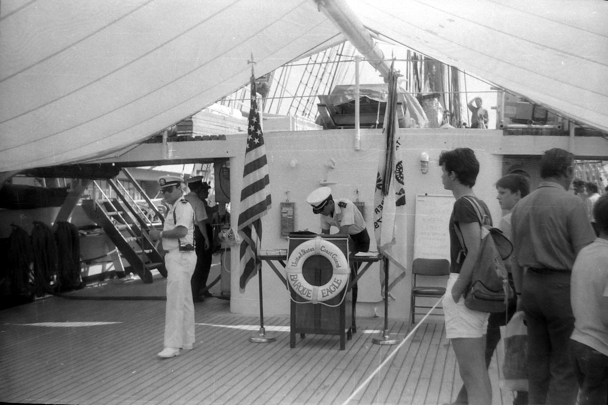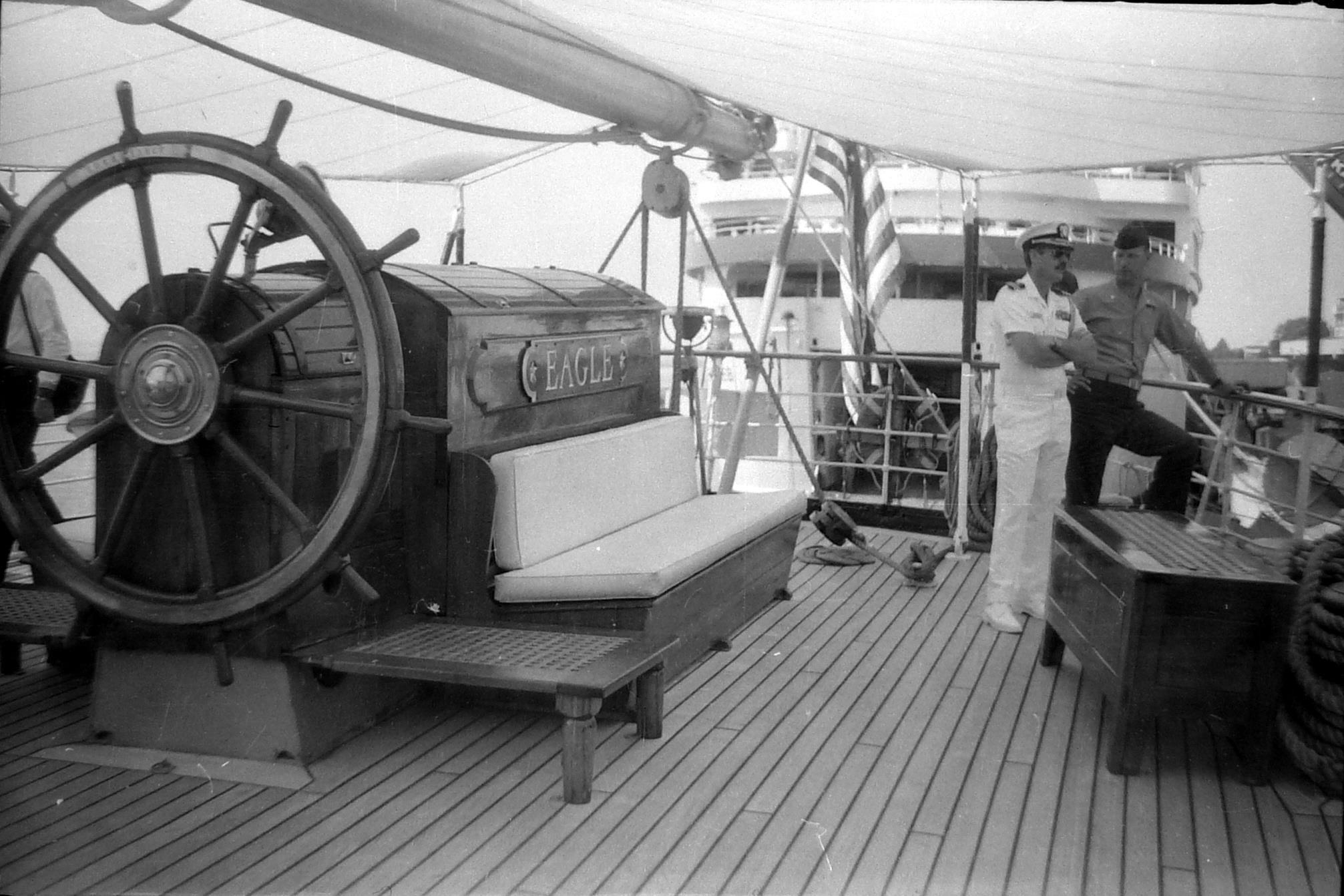 2. Лента в очередной раз флешмобит, на сей раз про корабли. Потянулся было принять участие со стоим текстом конца 80-х (я уже рассказывал, что там было почти-кругосветное путешествие на паруснике), но вовремя сообразил, что текст есть только в толстых тетрадках. Так что вот вам вместо этого пяток снимков американского парусника "Игл" (бывший германский "Хорст Вессель"), сделанных мной в Питере летом 1989-го: