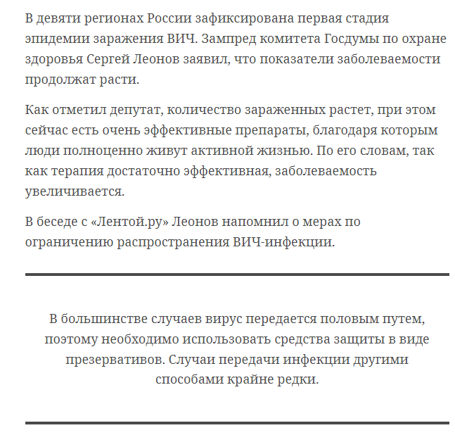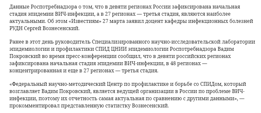 Сегодня в новостях промелькнуло сообщение о том, что в РФ надвигается эпидемия ВИЧ...