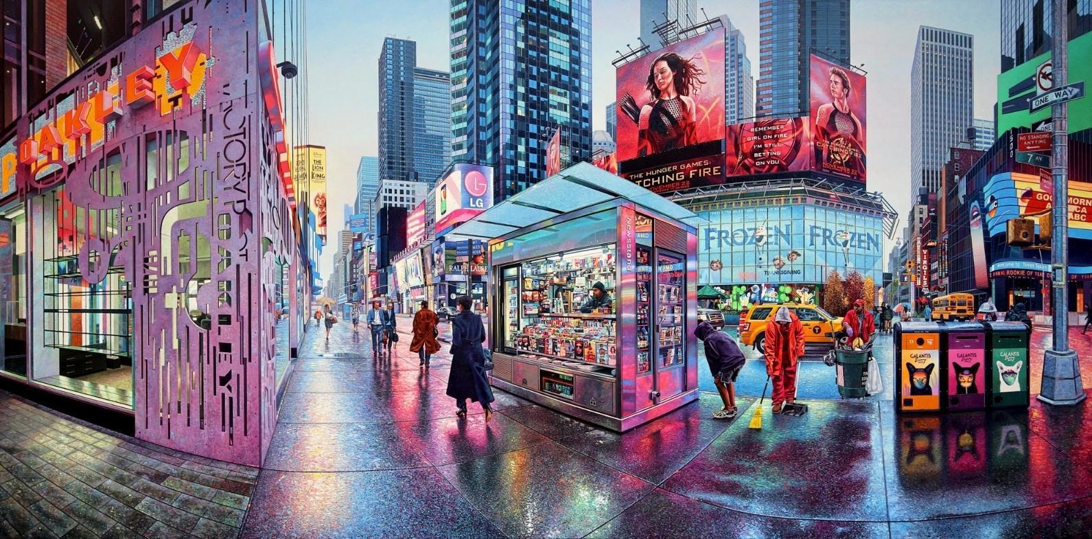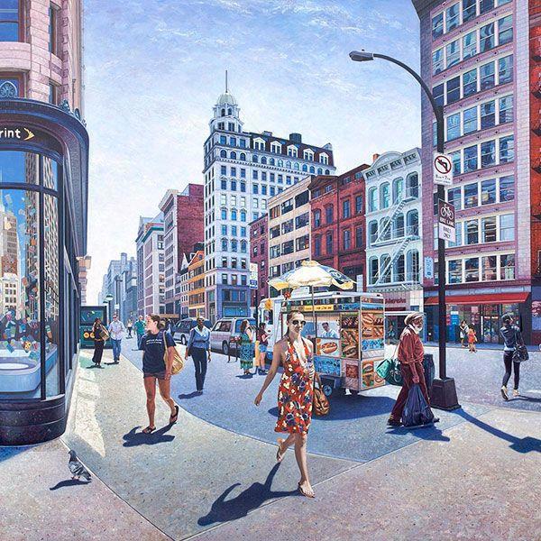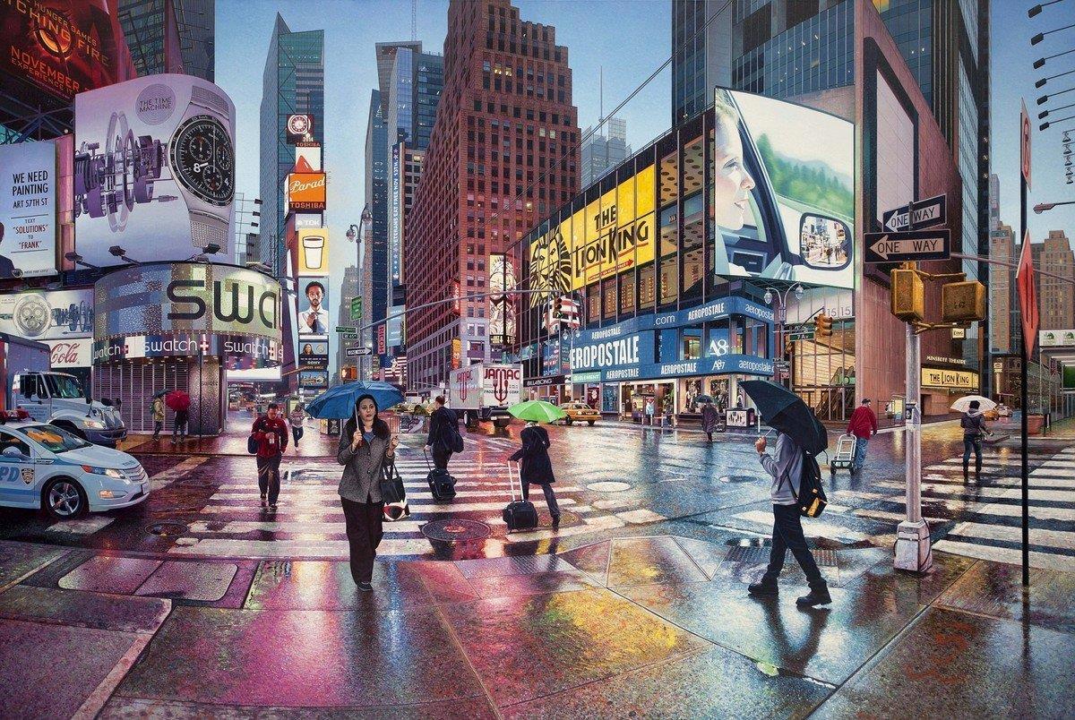 От сверкающих городских силуэтов Нью-Йорка до залитых дождём улиц Чикаго, Уолш приступает к работе над каждой картиной с посещения реальных мест, которые хочет изобразить.