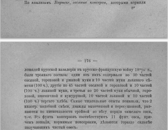 1) Лошадиный консерв не может заменить ни сена, ни овса, в каком бы количестве и в какой бы форме его ни давали.