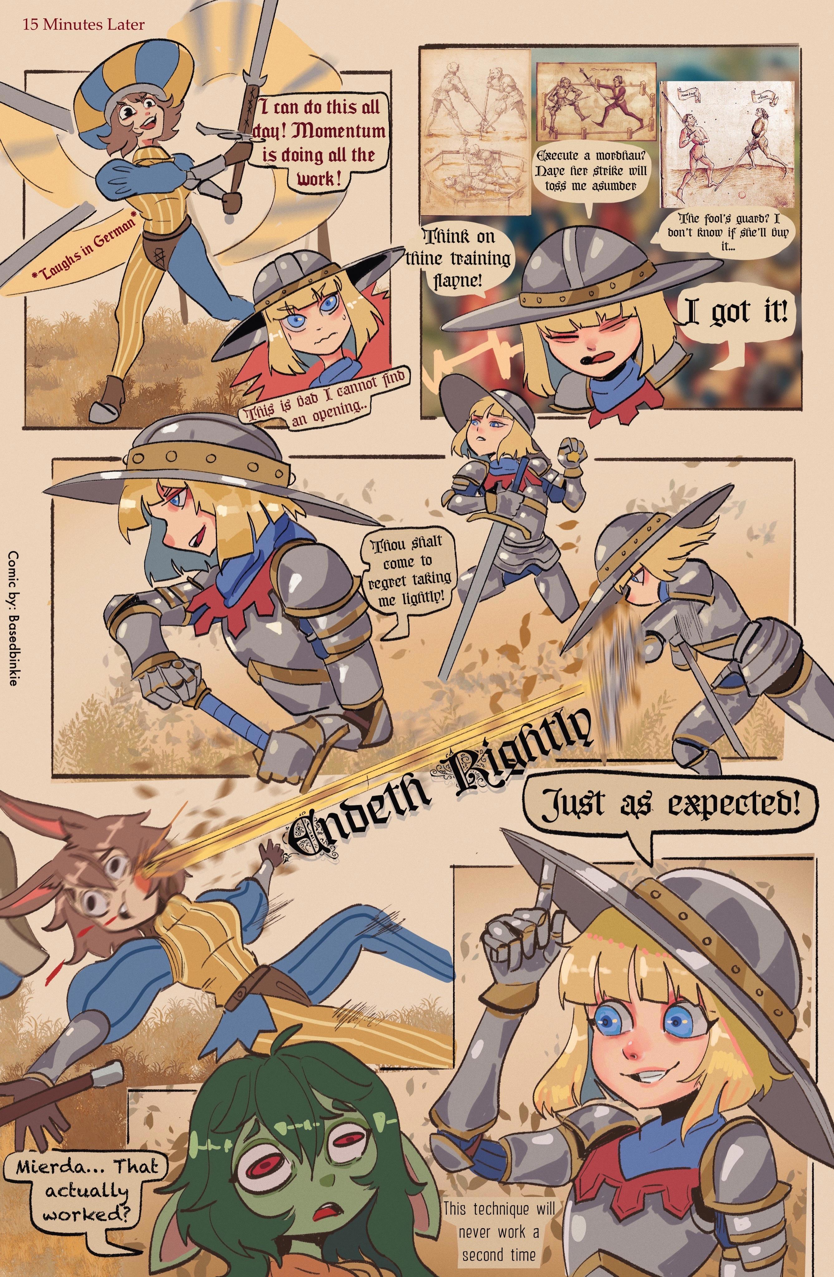 Автор: Руслан БирюшевЕщё один небольшой комикс от BasedBinkie о похождениях рыцаря и её гоббо-сквайра. Одолев котоухую самурайку они продолжили путь, но их ждала новая встреча...