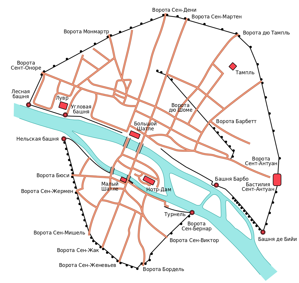 Еще существовала старая защитная стена, а Лувр все еще оставался крепостью.