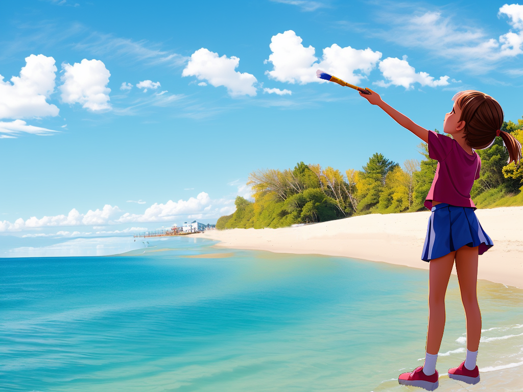 Наташка раскрасила море, и теперь рисует на небе белые облака.