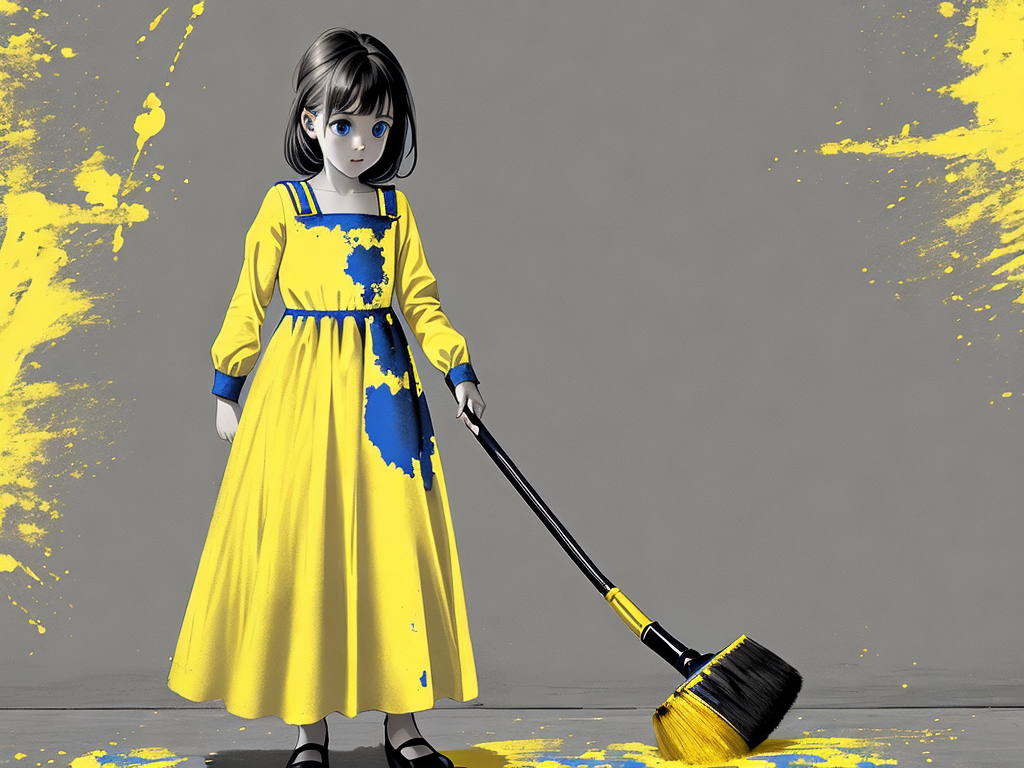 Так увлеклись, что Маша ведро с краской перевернула. Пришлось шваброй вытирать.
