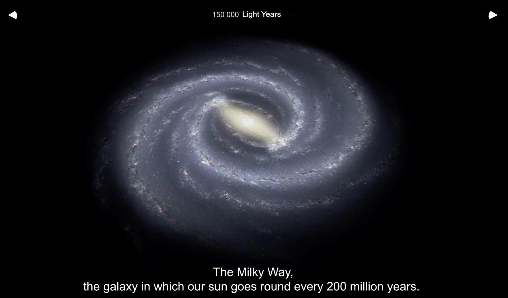 галактика, в которой наше солнце совершает оборот каждые 200 миллионов лет.