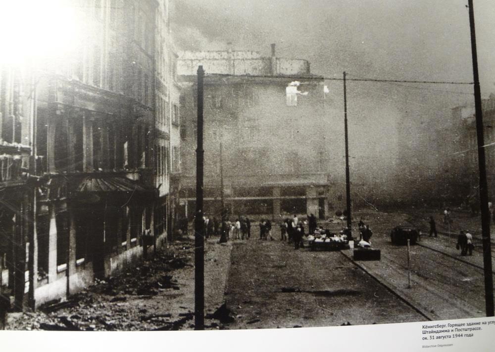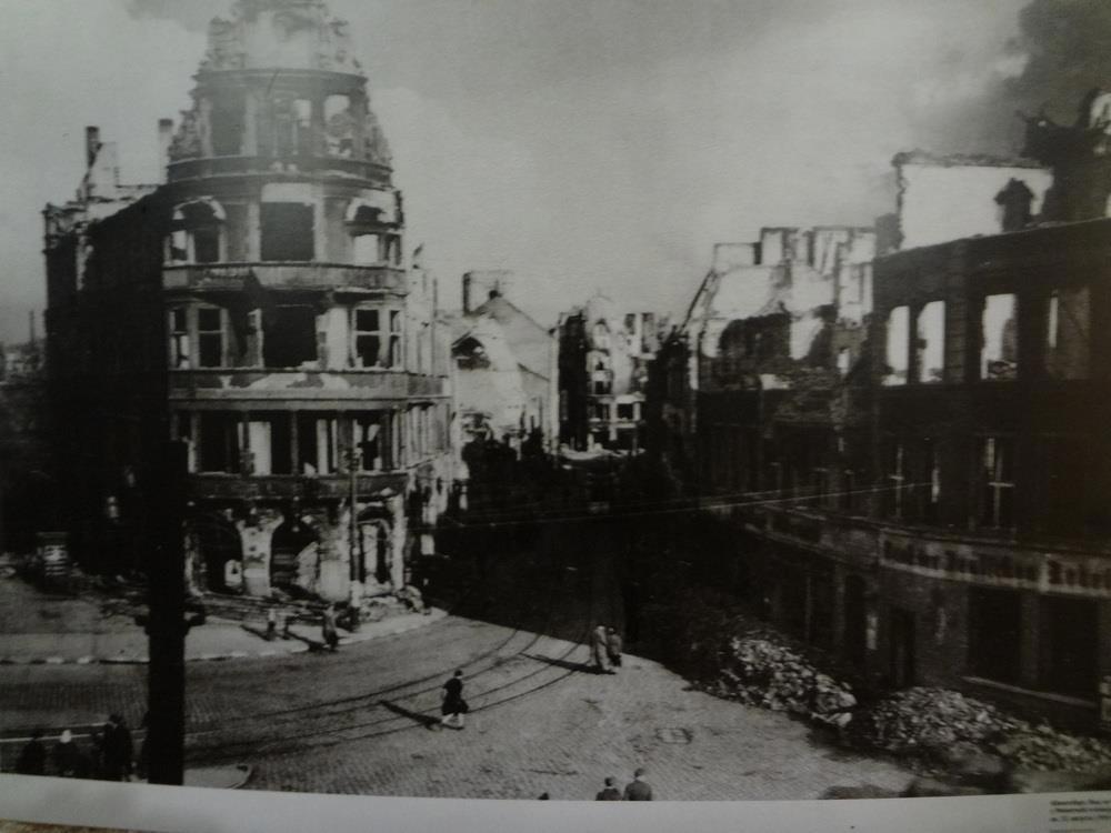 Догорающий дом на перекрестке Штайндамма и Почтовой улицы. Ситуация такая - как описана у Ремарка во "Время жить и время умирать" - дом горит неторопливо и спокойно - с верхнего этажа. Но неотвратимо. Те, кто живут ниже - спасают свои пожитки. Тушить дом некому. Нет воды и пожарных слишком мало, а горит почти все.