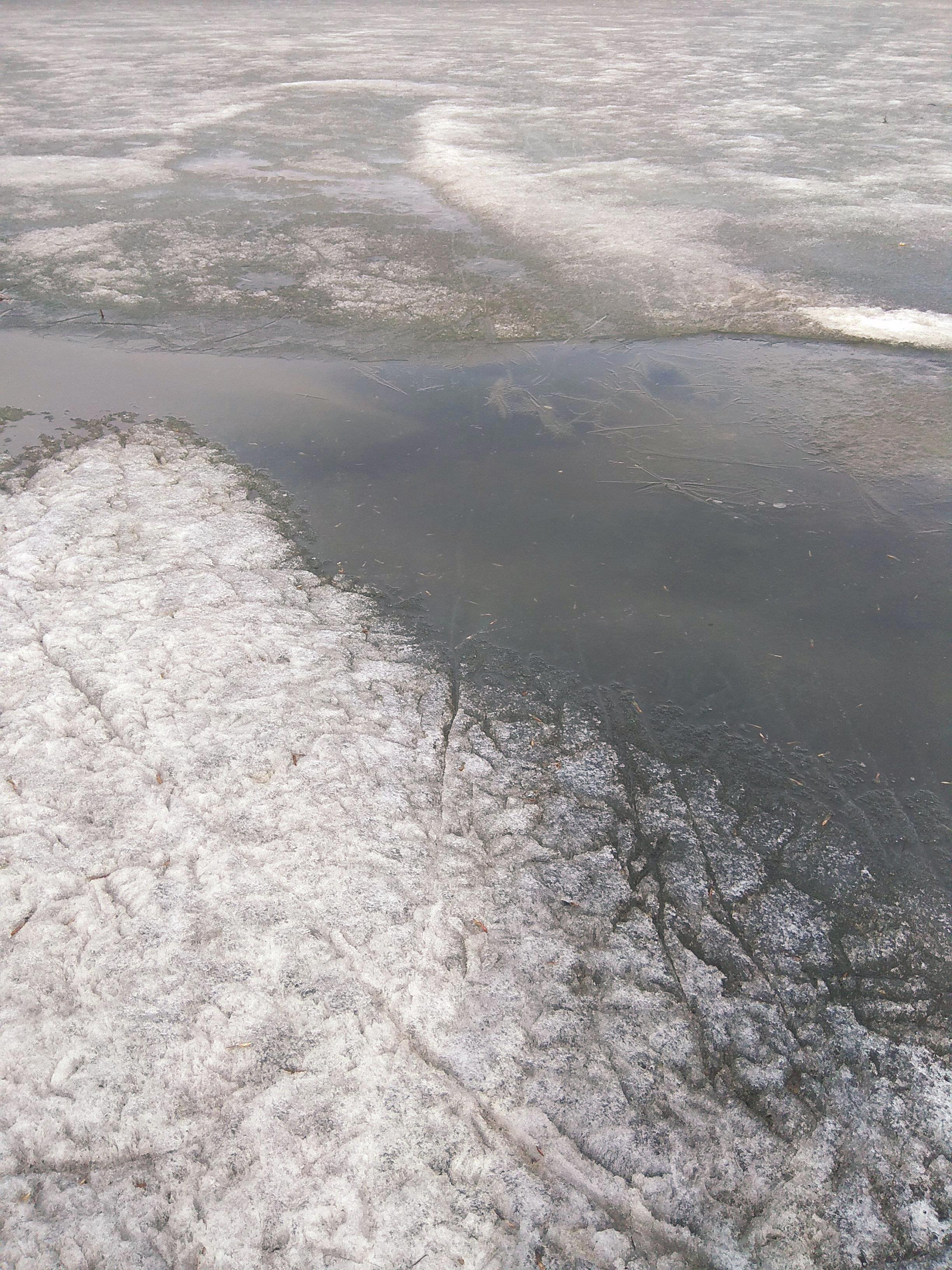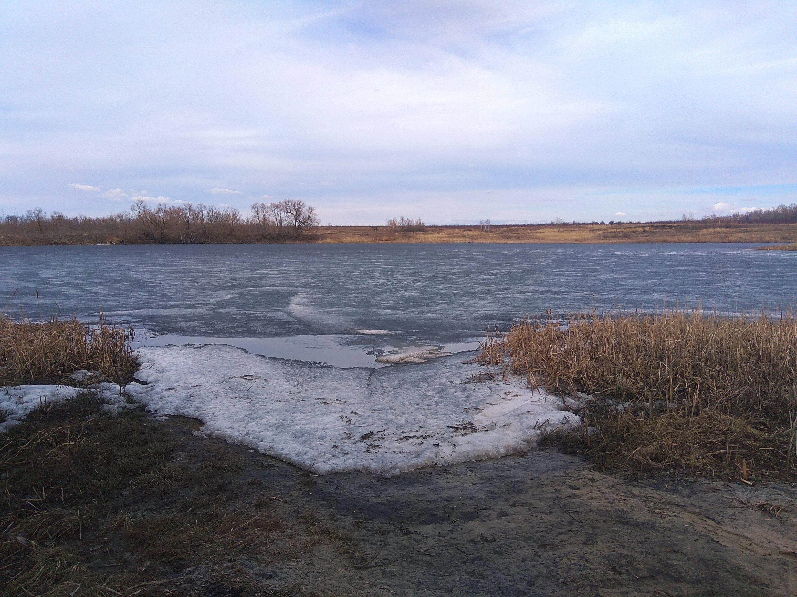 Заглянула и на пруд. Здесь уж пришлось накинуть куртку потому, что водоем находится в низине и еще скован льдом.