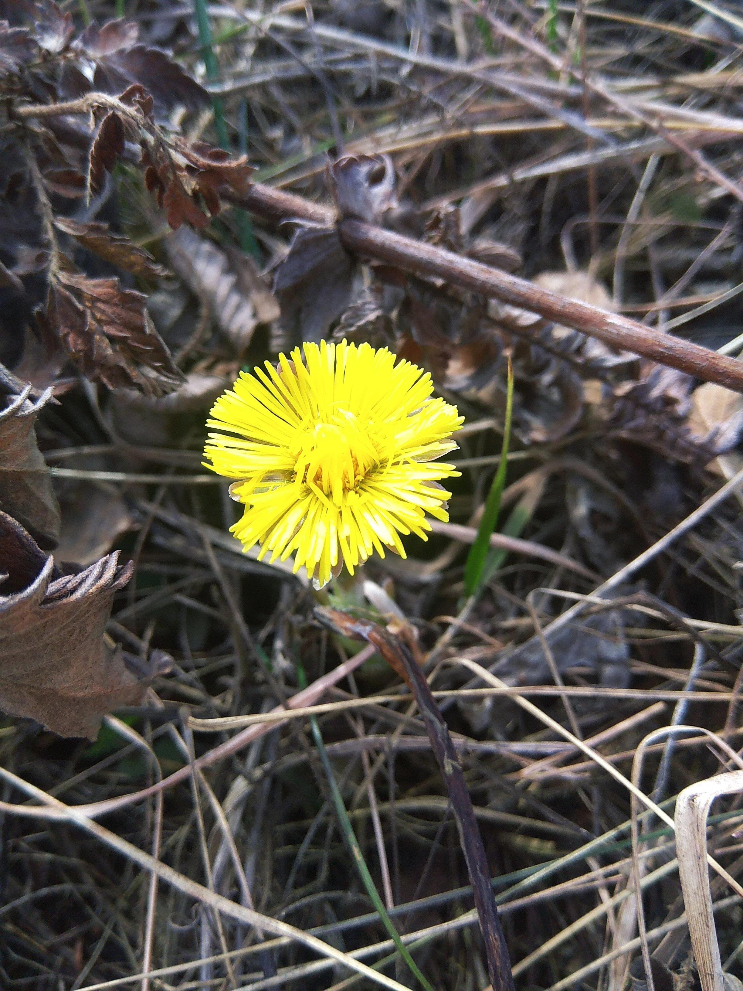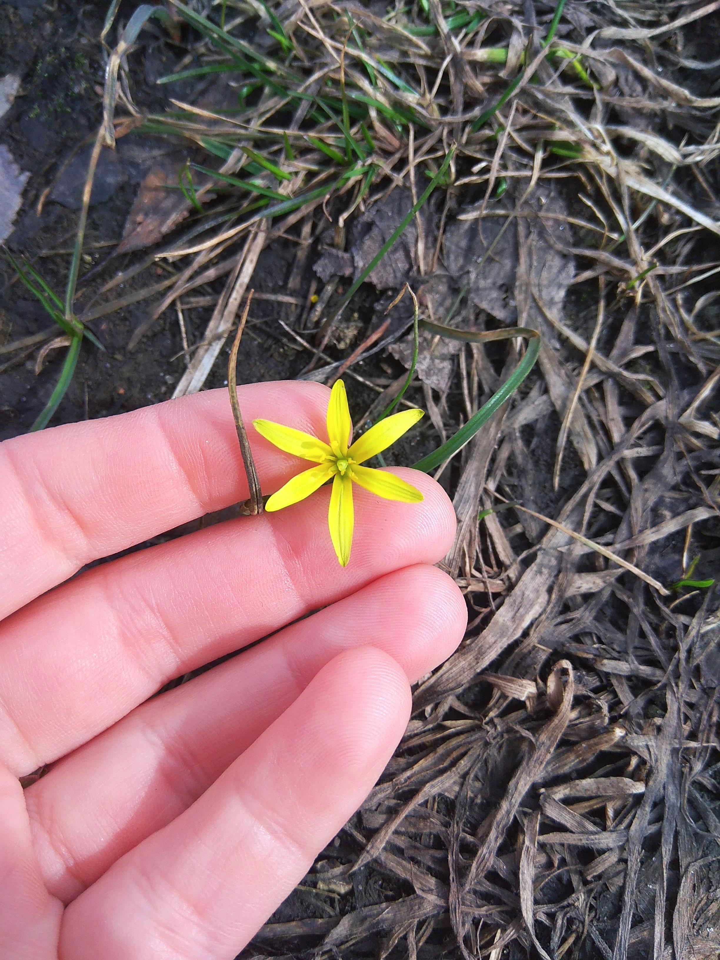 Как видите, все у нас еще серое. Только-только появляются первоцветы - гусиный лук и мать-и-мачеха.