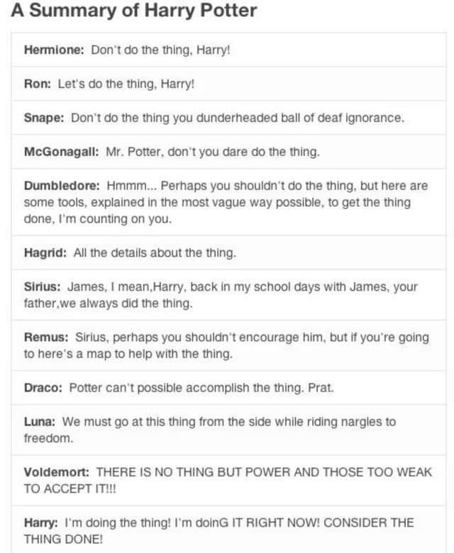 Сюжет любой книги "Гарри Поттера" вкратце.