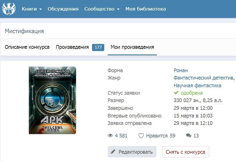 Ачивка «поучаствовать в литературном конкурсе с крупной прозой» получена.
