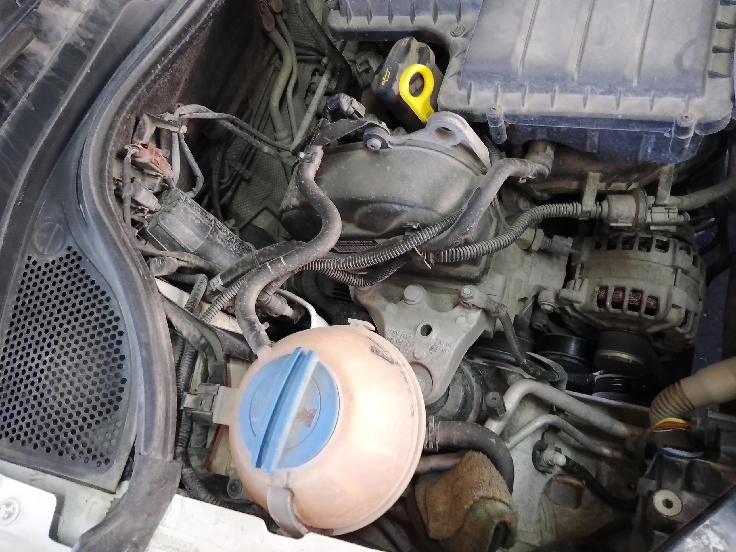 Откидываем лишний шланги трубки, попутно замечая, что резиновый топливный шланг входит одевается на топливную рейку, и держится чисто пружинным хомутом. Откидываем расширительный бачокм, ставим мотор на подставку, откручиваем клепление к подушке, снимаем переднюю крышку ГРМ, крепится одним винтом и двумя застежками.
