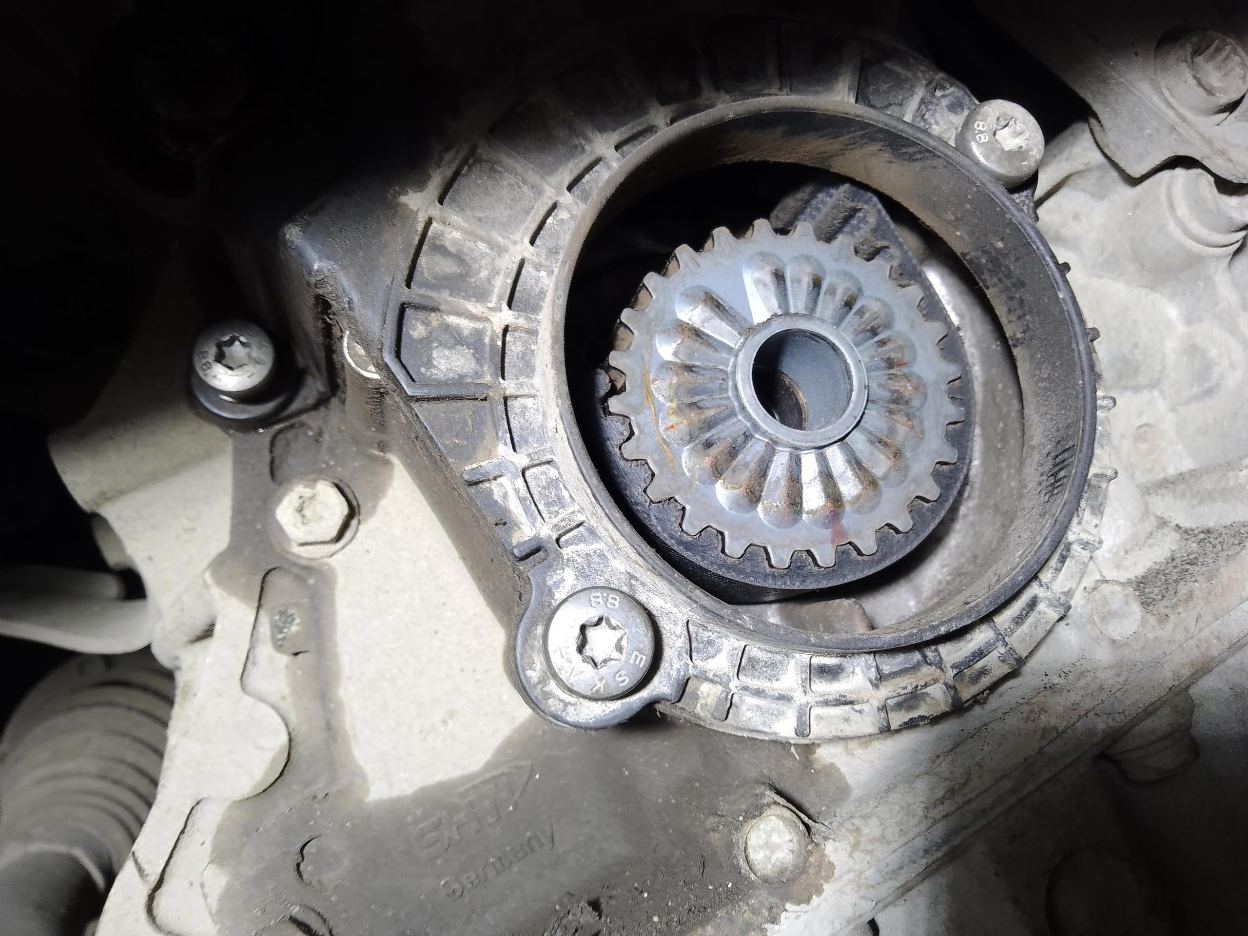 Ставим нижнюю крышку ГРМ, выворачиваем старый болт крепления шкива, и видим ещё одну метку, оставленную предшественниками.