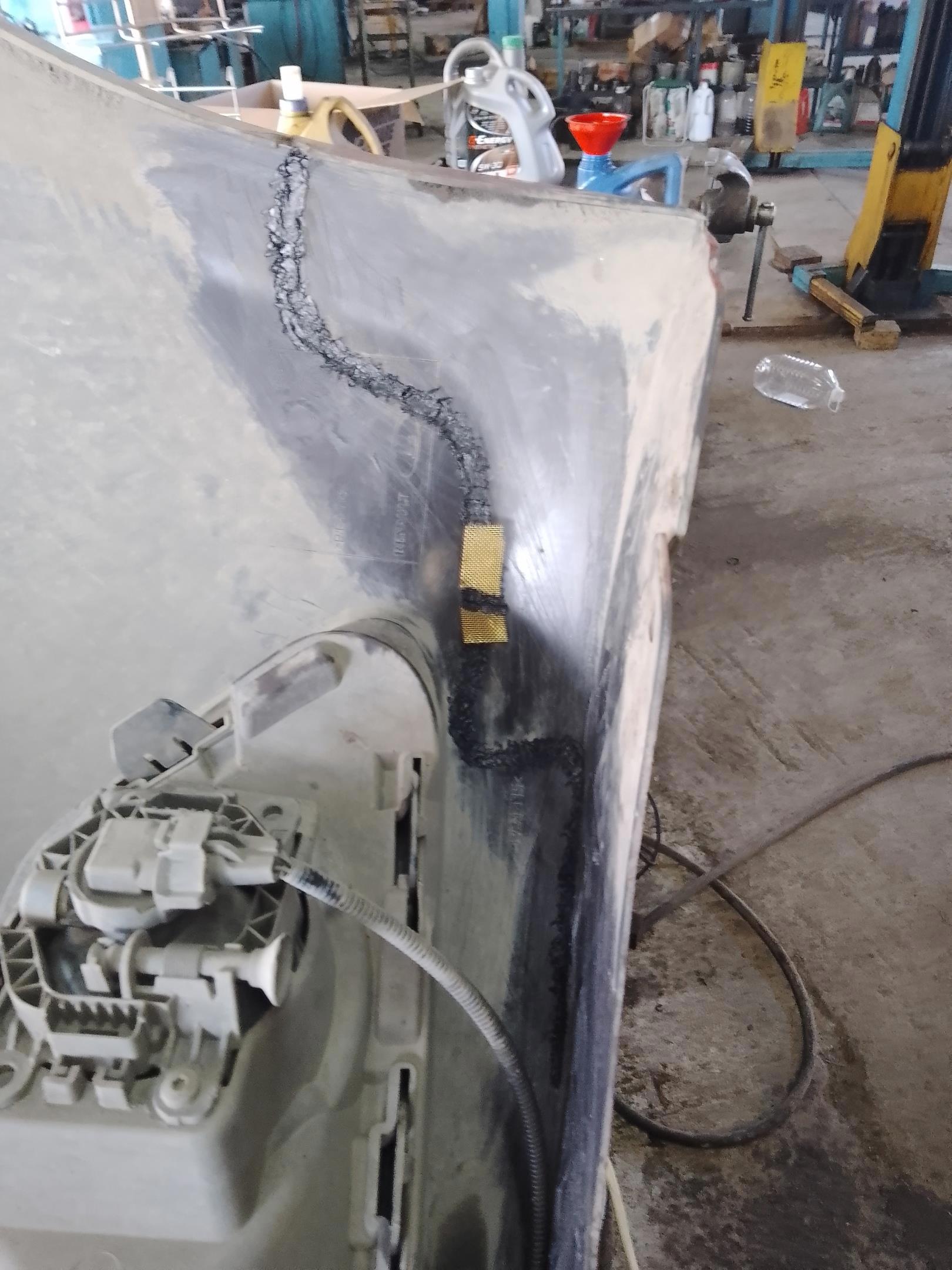 Приехало Рено Логан, с трещиной в бампере. Владелец думал, что починит накладками из металла или хз чего и саморезами, директор предложил запаять. При этом он (директор) хотел паять не снимая. Наивный, блин, человек. Снимаем! Снимается бампер с логана быстро. Смотрим изнутри.