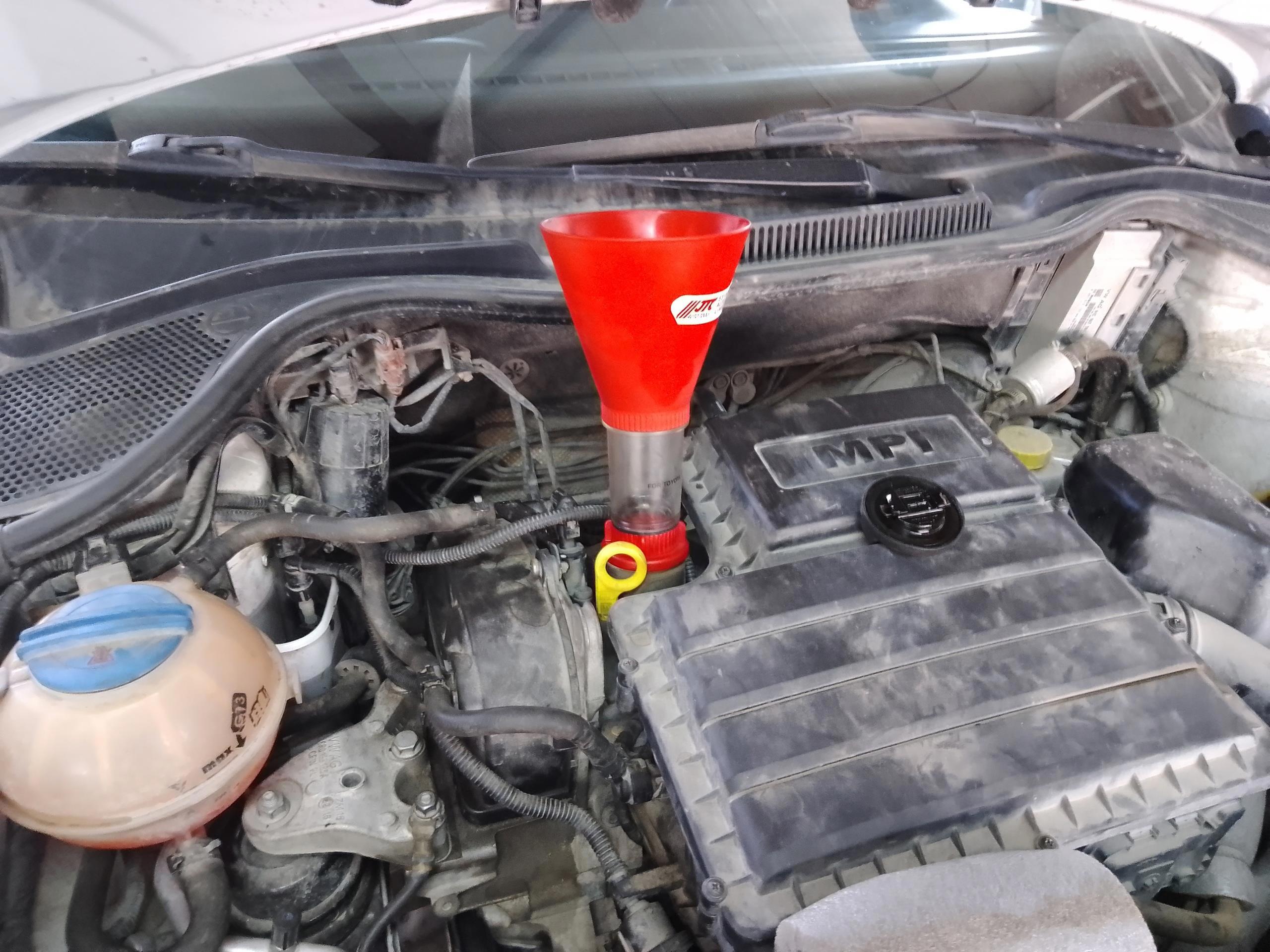 Осталось залить масло, для чего у нас есть специальная варонка. Без неё это то ещё испытание...