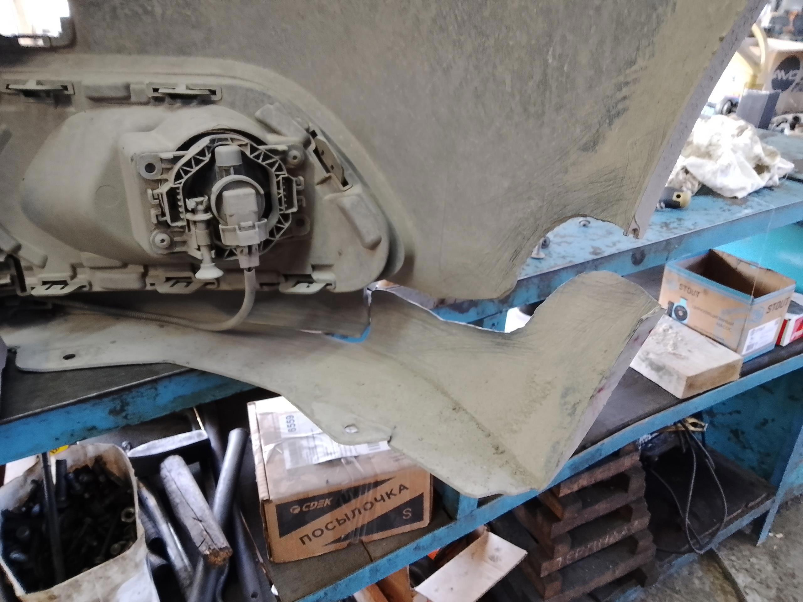 Вы думали, у меня всё по Фольксам? Хаха. Нет. Приехал всё тот же пациент, который был с тормозами, только на этот раз с маслом и ГРМ. Вообще клиент жаловался, что масло куда-то пропадает, попросил выяснить - куда. Осмотрев мотор, и не найдя подтёков, поговорил с мотористами, и они рассказали, что масложов для этих моторов норма. Чинить - бесполезняк. Один поршень стоит 20 000+ рублей. А надо их 4. Начинаем разборку, снимаем правое переднее колесо и подкрылок.