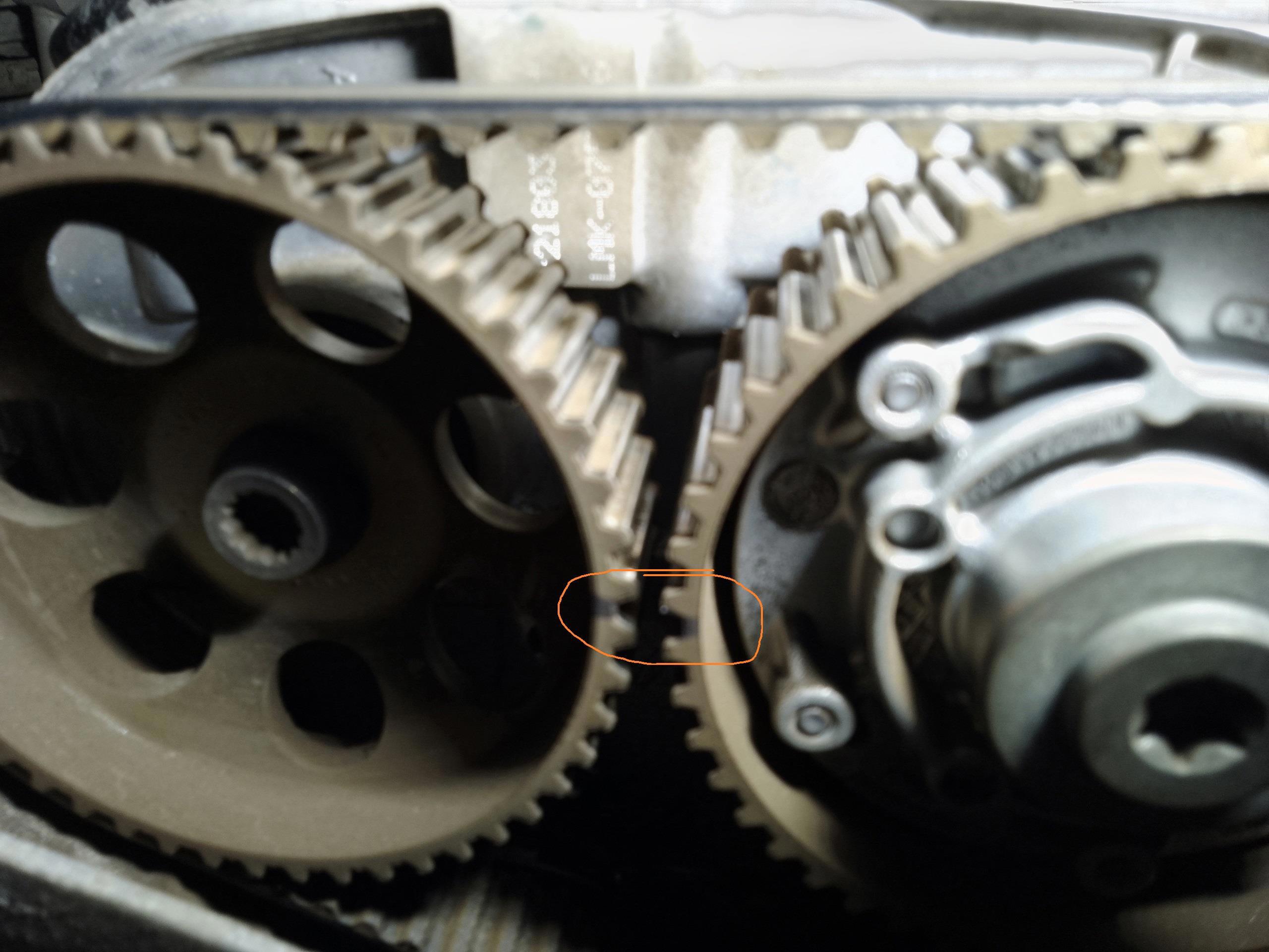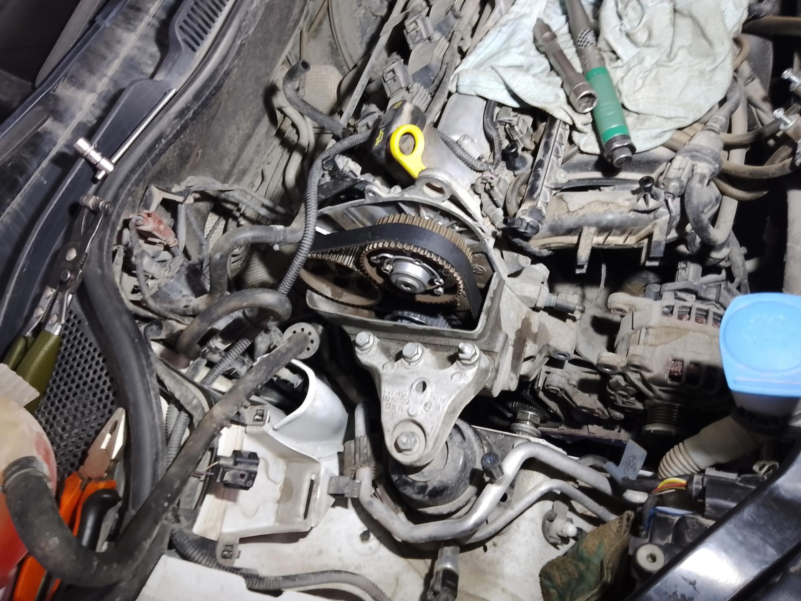 Машина завелась на 5+. Старый ремень ГРМ был в трещинах, но фото где-то потерялось... Владелец говорит, что брал машину с рук, пробег 108 000 км, при этом ГРМ или менялся, или туда за каким-то чертом лазили. Если менялся - то пробег можно умножать на 2. Ибо ремень ходит 120 000 гарантированно.